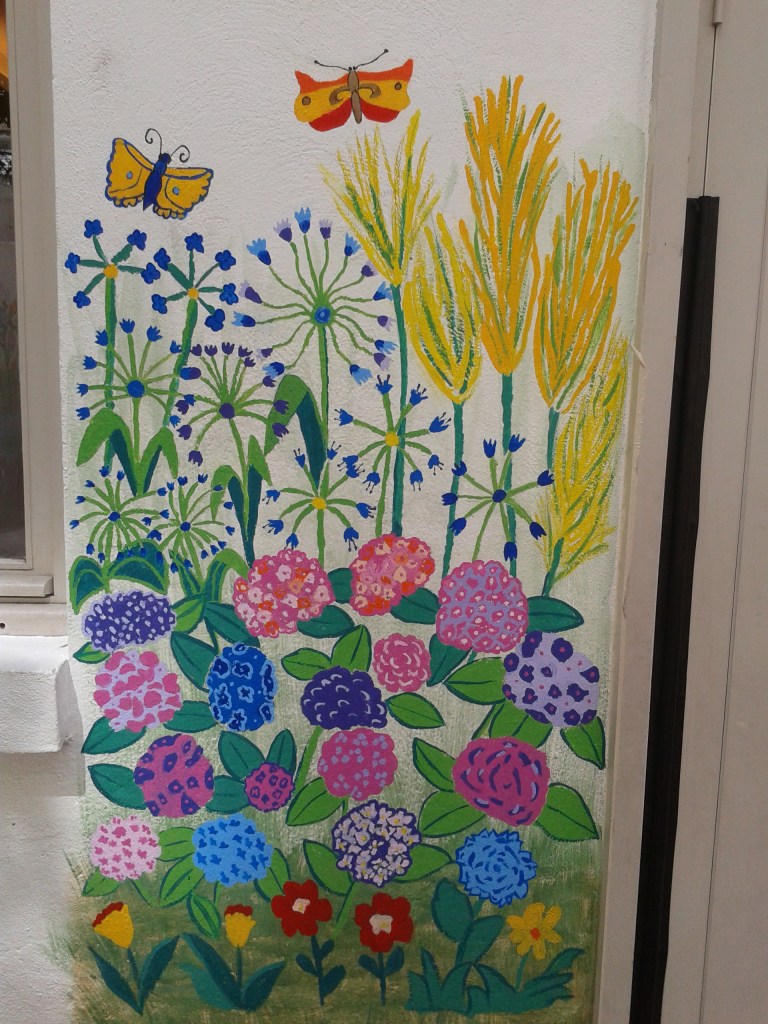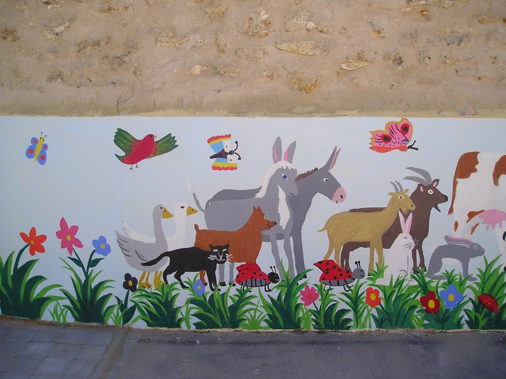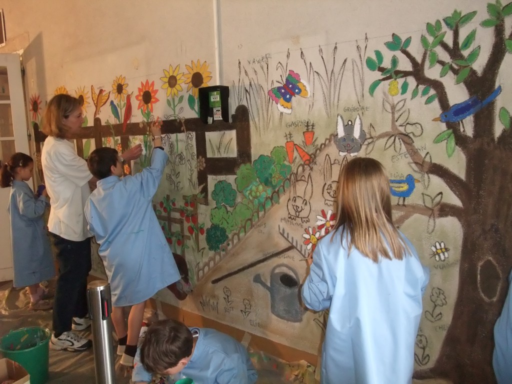 J’ai mis au point un projet d’école « fresques murales » pour faire découvrir à tous les élèves d’un établissement scolaire le plaisir de la création picturale tout en décorant eux même leur école sous ma direction.
